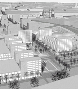 die Gestaltung der Vorplätze mit der Erschließung der Parkhäuser