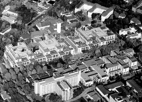 die chirurgischen Fachabteilungen, nördlich der Allee die konservativen